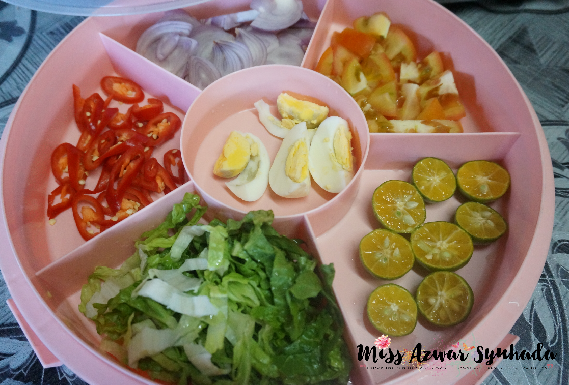 Kalau ada timun lagi best! Lupa pula nak beli timun dekat Pasar Banting, dah balik rumah baru teringat, jawabnya kita gantilah apa-apa sayur yang ada dalam peti ais. Tak gitu?